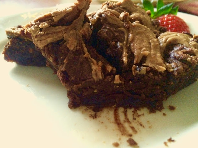 Wir sind beide eher gesundheitsbewusst, achten auf die Herkunft der Zutaten und probieren auch öfter vegan. Deshalb habe ich zum Muttertag ein kleines Küchen-Experiment (in sehr freier Interpretation der Bohnen-Brownies von Chocolate Covered Katie) gewagt: Einen veganen, glutenfreien Brownie mit Erdnussbutter-Swirl, der dank Proteinpulver und weißen Bohnen im Teig auch reichlich Eiweiss enthält.